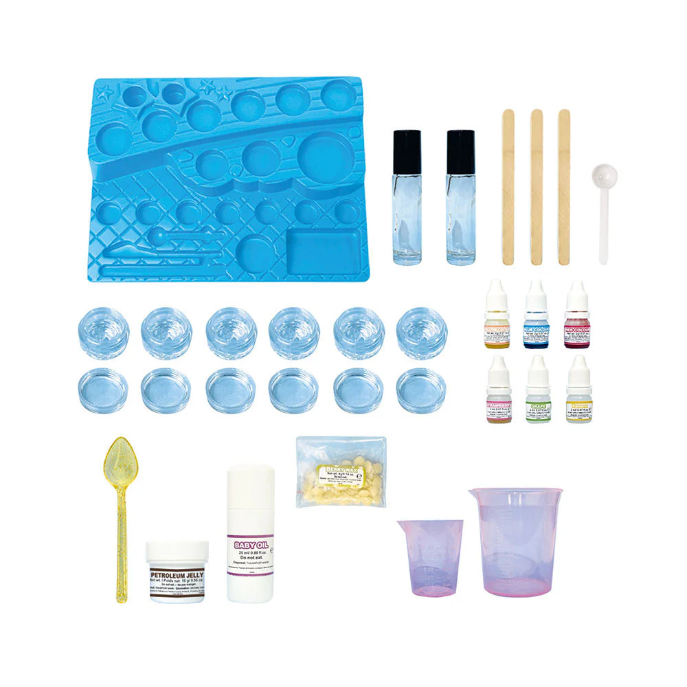 Whip up your own collection of lip balms and glosses in every shade of the rainbow! This fun cosmetics lab lets you blend custom colors and flavors to match your mood. You'll get everything needed—a dedicated workstation, ingredients, containers, and applicators—to craft up to six creamy lip balms in jars plus two glossy lip treatments in roller bottles. Mix, match, and create personalized lip products that are as unique as you are.