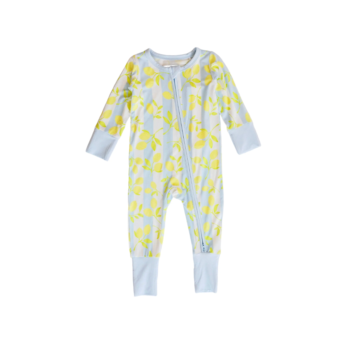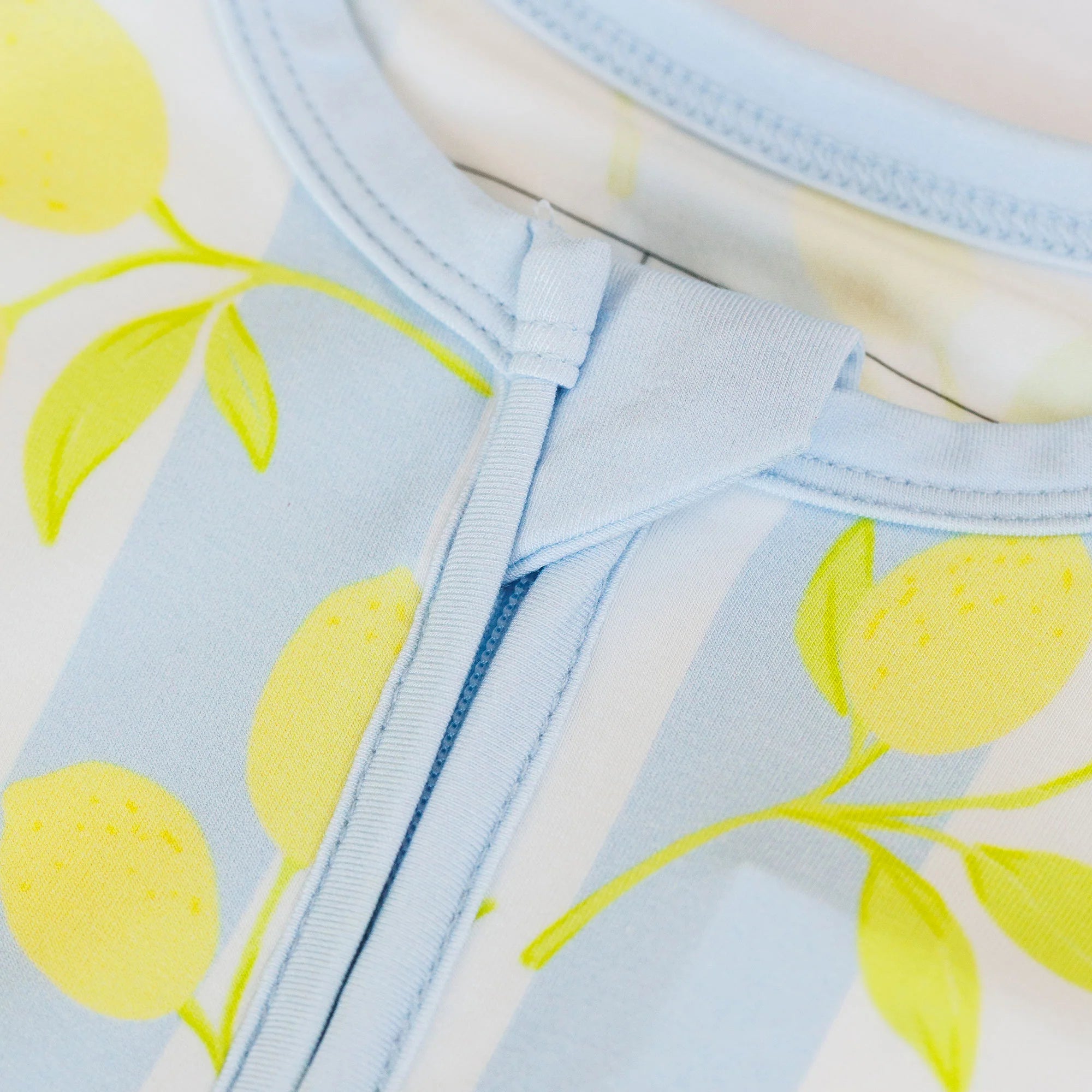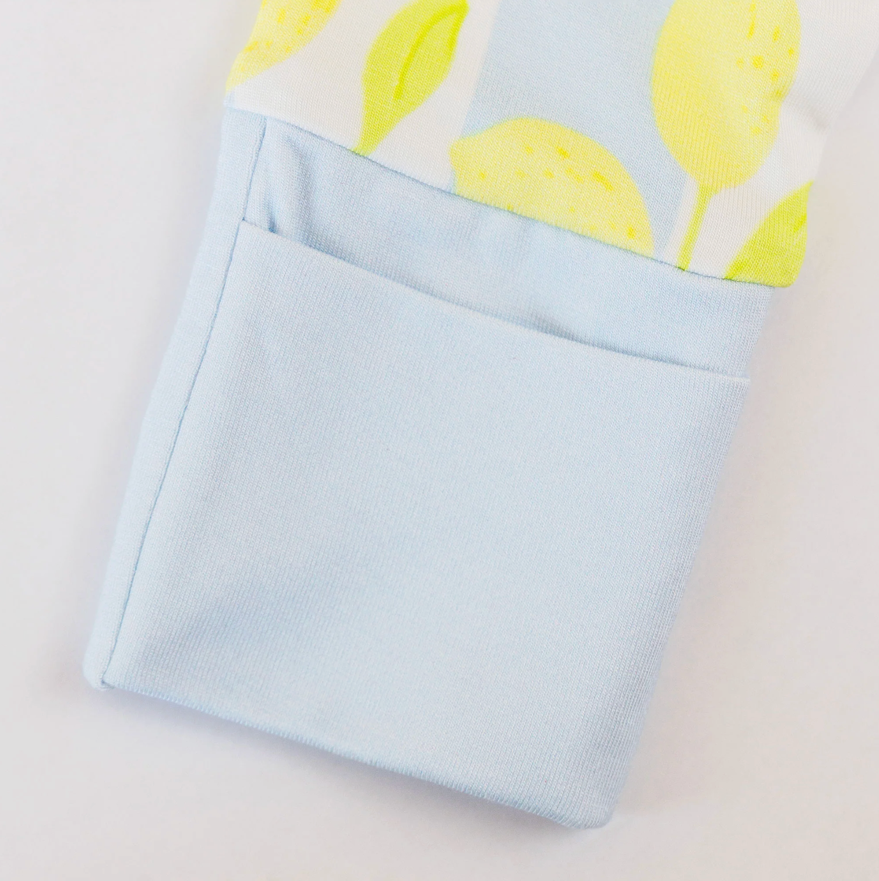 Dreamy and delightful, the Zipper Romper in Lemons – Blue combines comfort with style. Made from soft, breathable viscose from bamboo, this romper features a convenient two-way zipper and cozy fold-over cuffs—perfect for easy diaper changes and all-day wear. The stretchy, gentle fabric keeps little ones comfortable from bedtime through playtime. A sweet essential for peaceful sleep and sunny adventures.