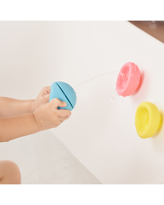 This thoughtfully designed set brings together 2 b is for ball® toys in vibrant yellow and blue, presented in a charming bus-themed box illustrated by sundae kids. Award-winning design meets practical play—each ball features a patented openable design that transforms into a teether, bath toy, sensory tool, and open-ended play companion. Crafted from 100% food-grade silicone and completely plastic-free, these balls grow with your child from newborn through early childhood. Dishwasher safe for easy cleaning. Red dot product design award winner 2025.