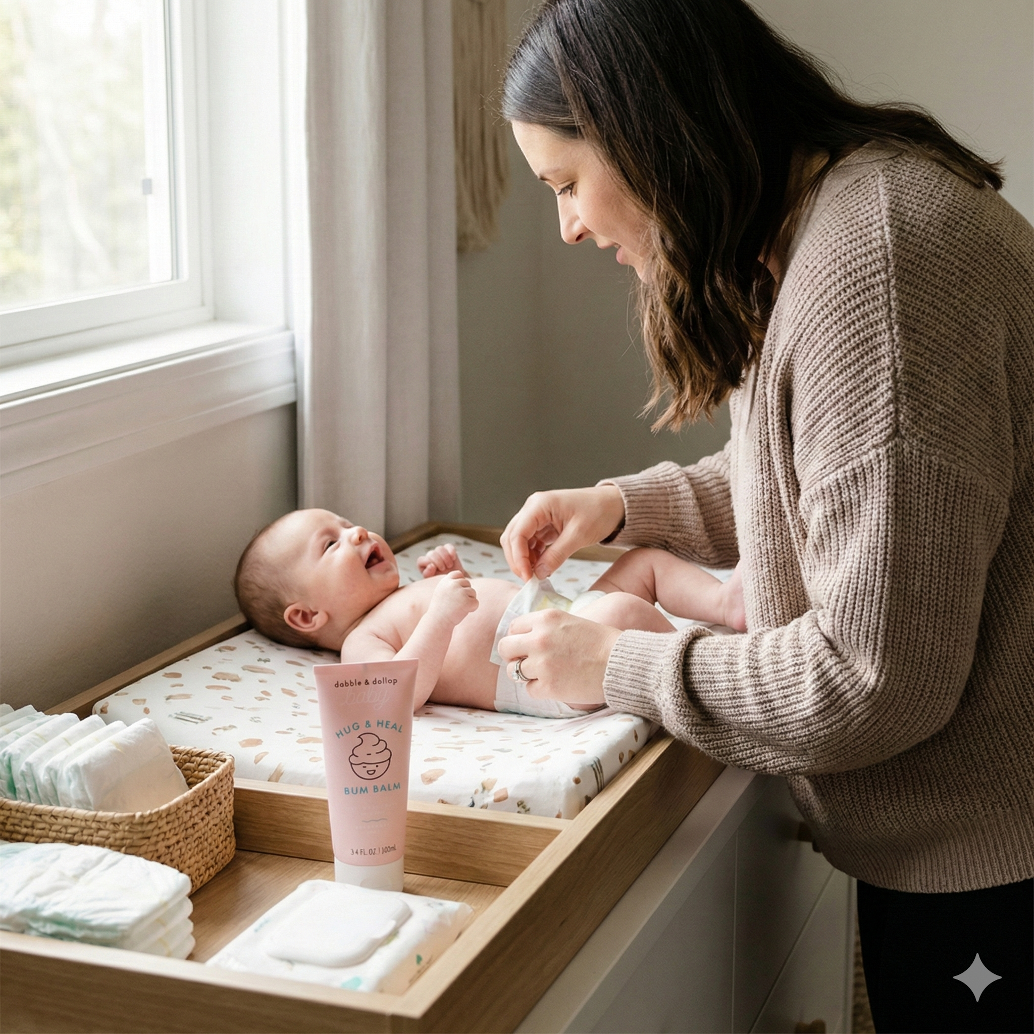 Hug & Heal™ Bum Balm is a gentle, weightless diaper cream crafted with just six natural-origin ingredients to protect and soothe baby's delicate skin. This fragrance-free, non-medicated formula creates a breathable barrier that calms irritation while supporting the skin's natural defenses—without the heaviness or residue of traditional creams. Zinc oxide, jojoba oil, and chamomile extract work together to provide everyday comfort and relief during diaper changes. Perfect for sensitive skin that needs effective care with minimal fuss.