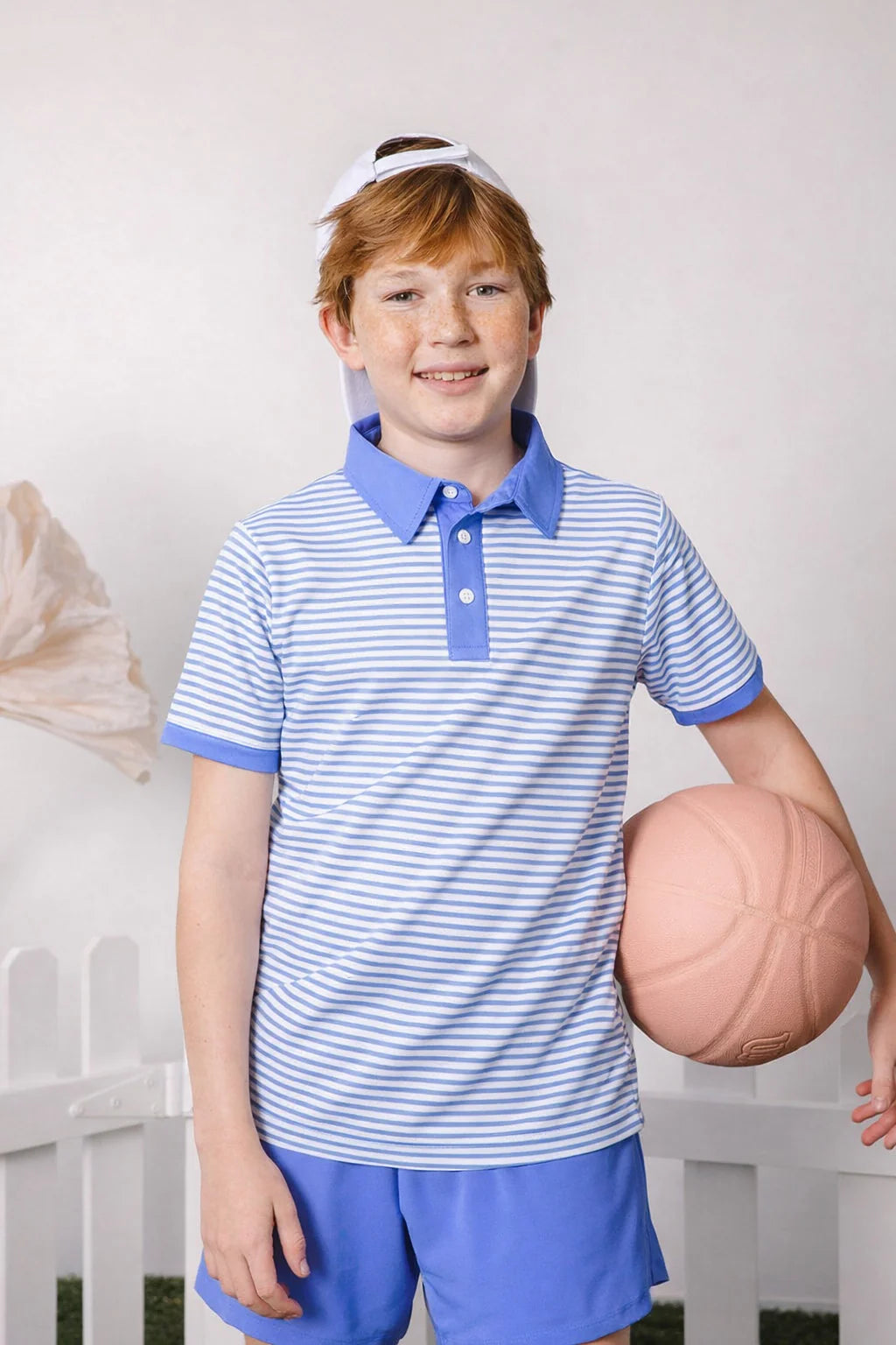 Courtside Kids | sky blue thin stripe polo shirt