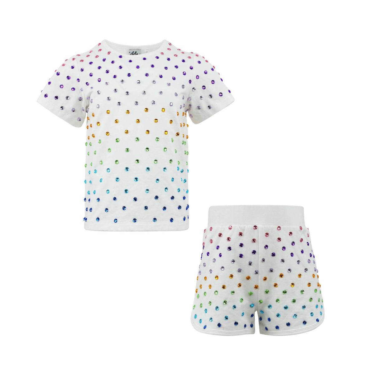 A cheerful two-piece set featuring a breezy layered top and coordinating shorts in soft pink. Rainbow trim and a playful mini charm add vibrant personality, while the lightweight, breathable 92% cotton blend keeps her comfortable during sunny adventures and outdoor play. Machine wash gently and lay flat to dry.