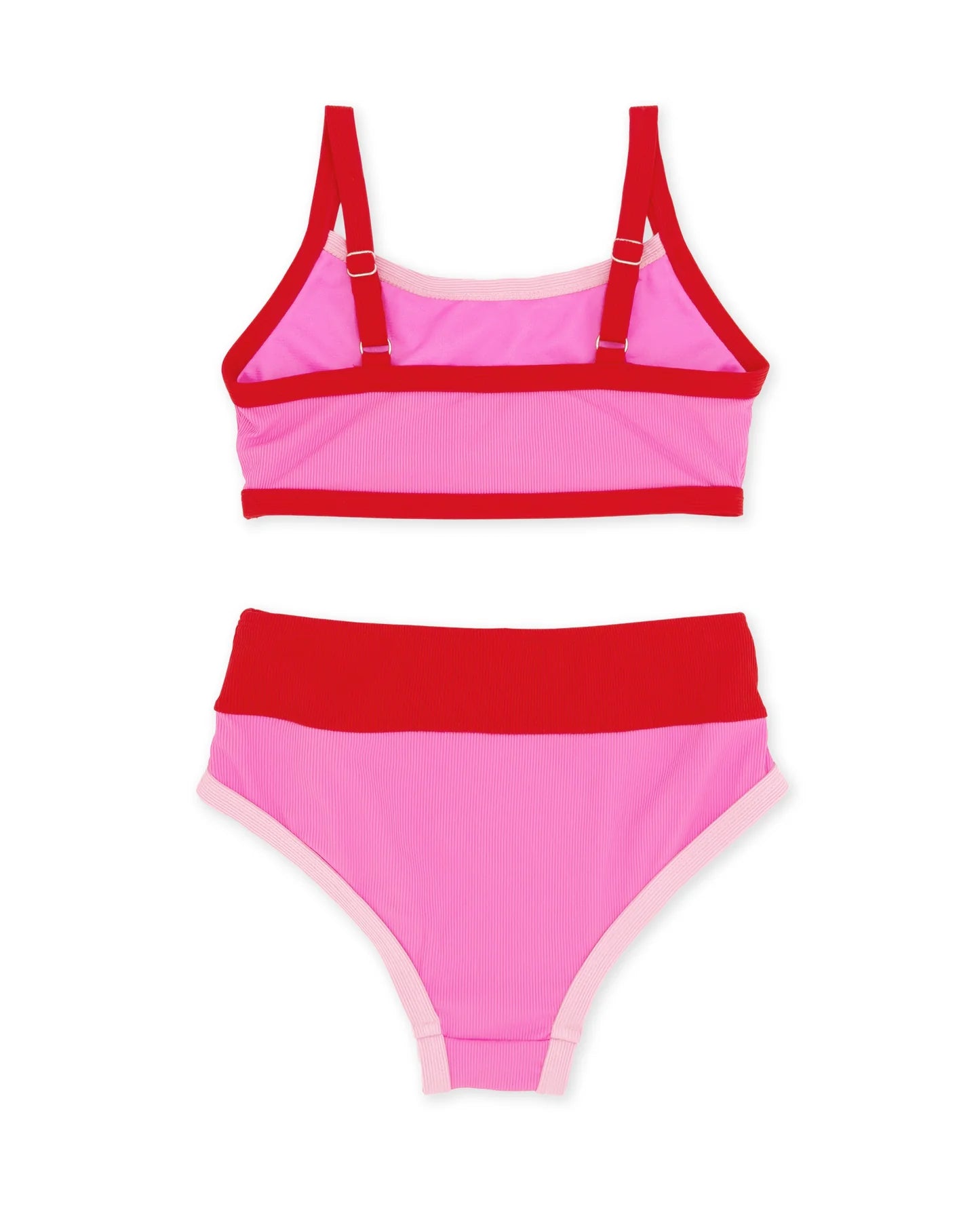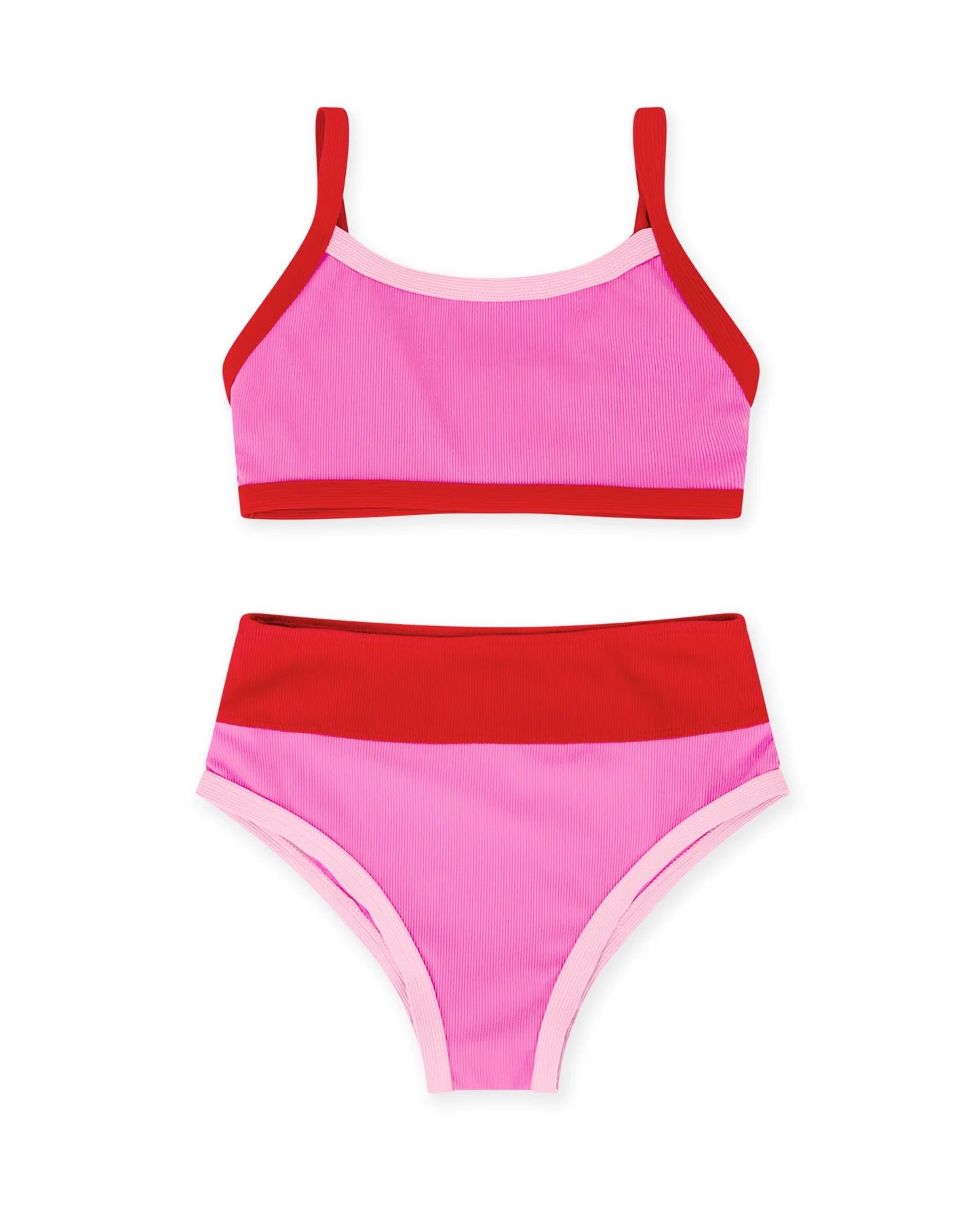 Make a splash in retro style with this color-block bikini featuring a sporty crop top and high-waisted bottoms. Crafted from soft mini-rib swim fabric, it's fully double-lined for a flattering fit and confident coverage. Perfect for vintage-inspired beach days with modern comfort.