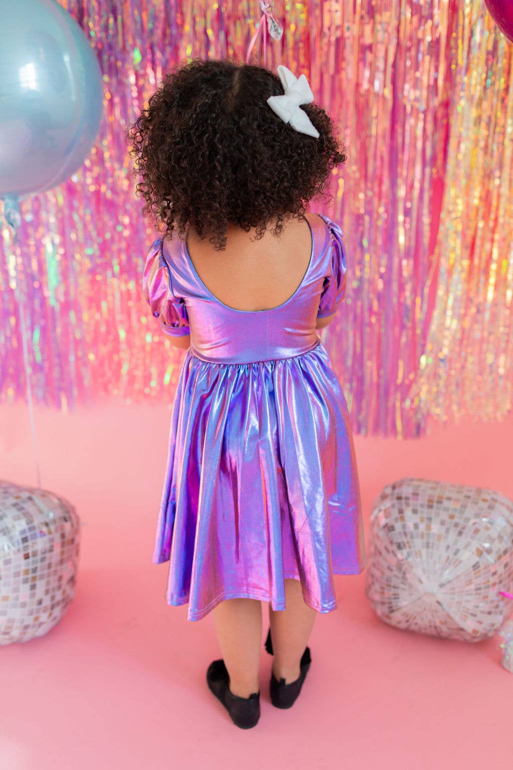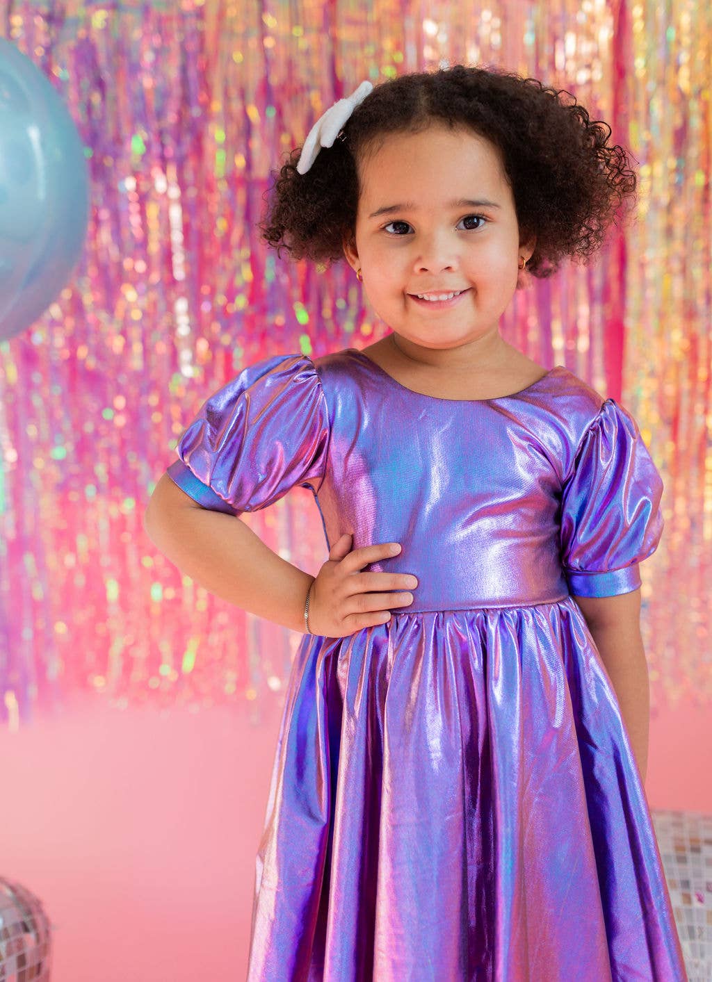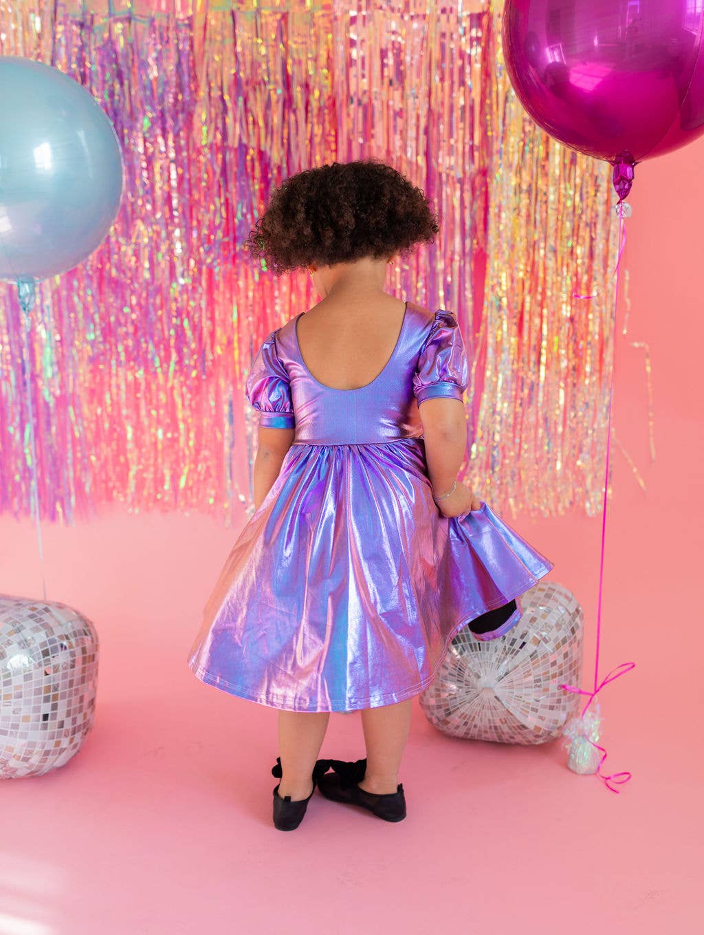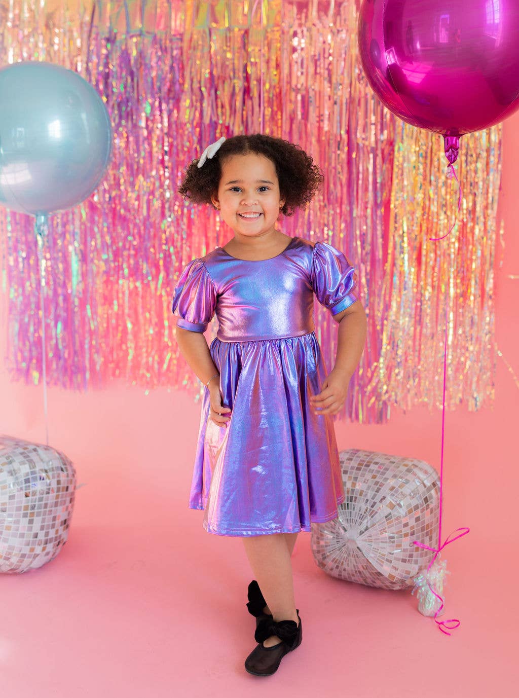 Twirl into the spotlight in this dazzling Puff Dress by Ollie Jay! Featuring eye-catching purple lamé that catches the light from every angle, this dress delivers serious party vibes. The voluminous puffed sleeves add a playful touch, while the scooped back keeps things flirty and fun. A generous full skirt gives you room to move and groove, and the elastic waist paired with a classic crew neck means comfort never takes a backseat. Perfect for celebrations, nights out, or whenever you want to shine.