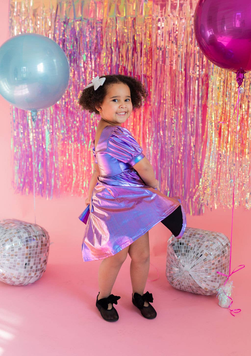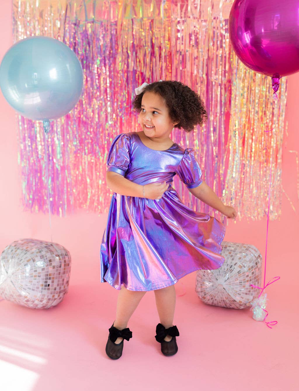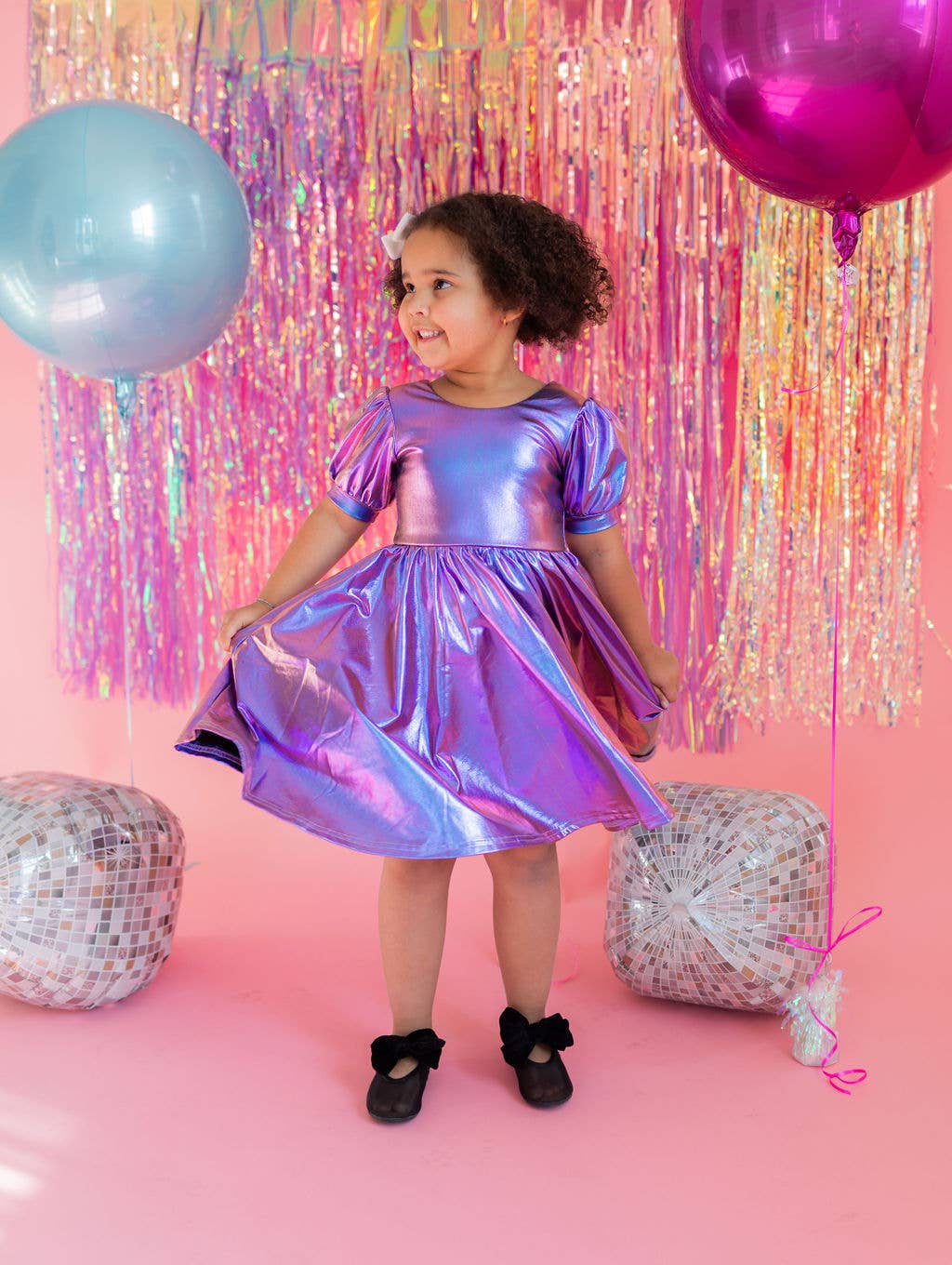 Twirl into the spotlight in this dazzling Puff Dress by Ollie Jay! Featuring eye-catching purple lamé that catches the light from every angle, this dress delivers serious party vibes. The voluminous puffed sleeves add a playful touch, while the scooped back keeps things flirty and fun. A generous full skirt gives you room to move and groove, and the elastic waist paired with a classic crew neck means comfort never takes a backseat. Perfect for celebrations, nights out, or whenever you want to shine.