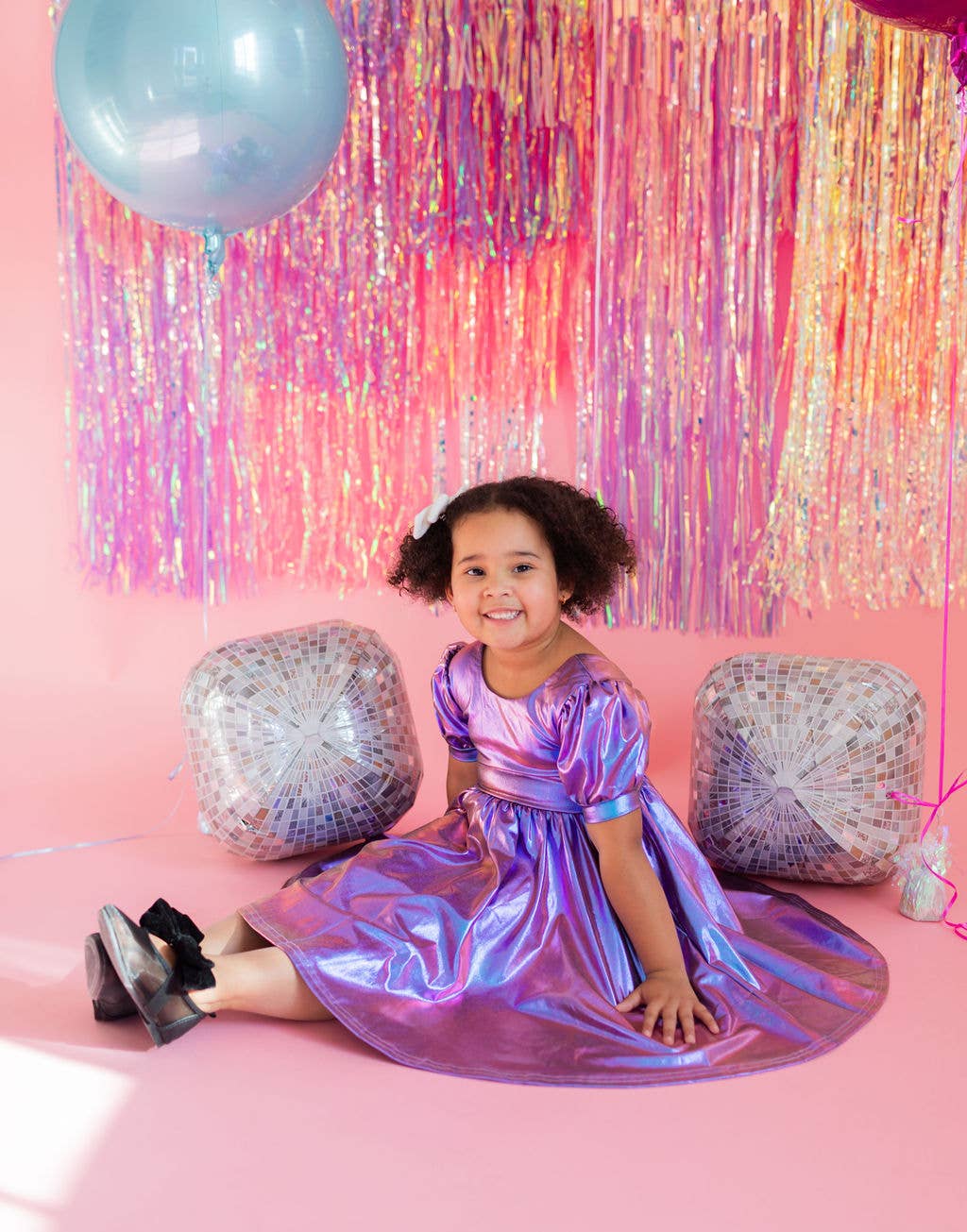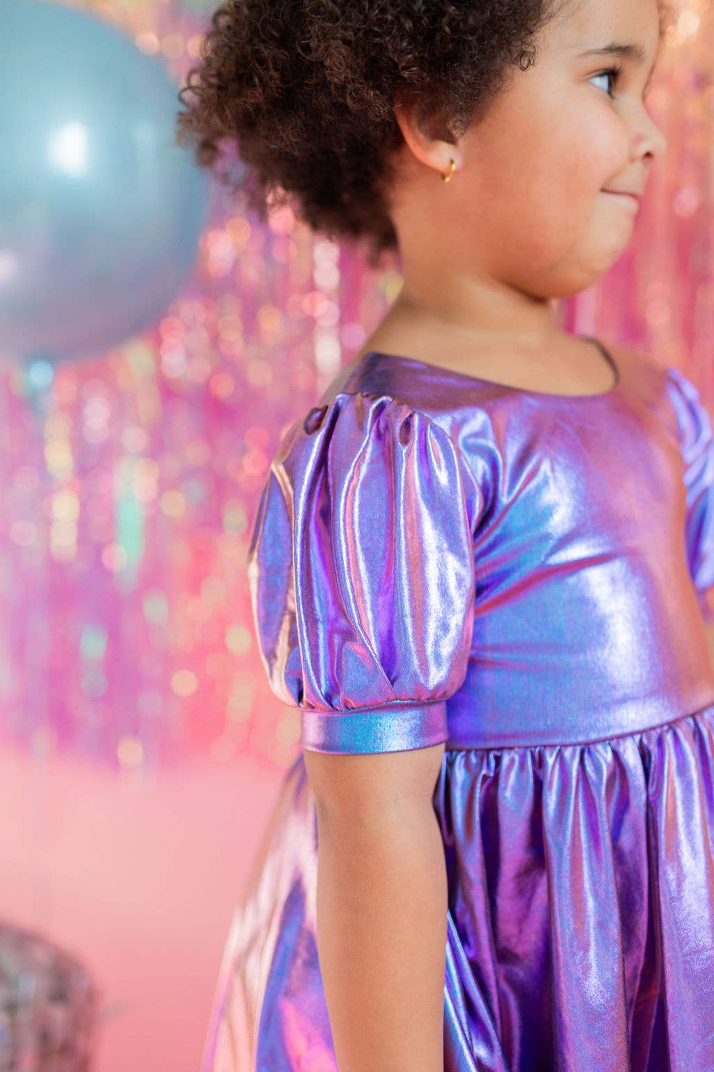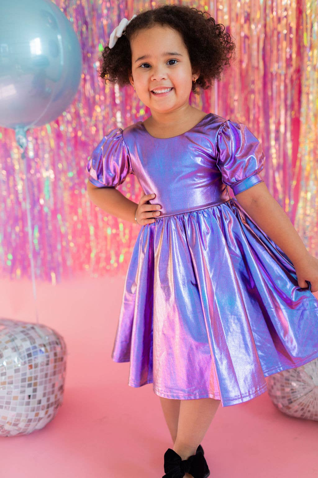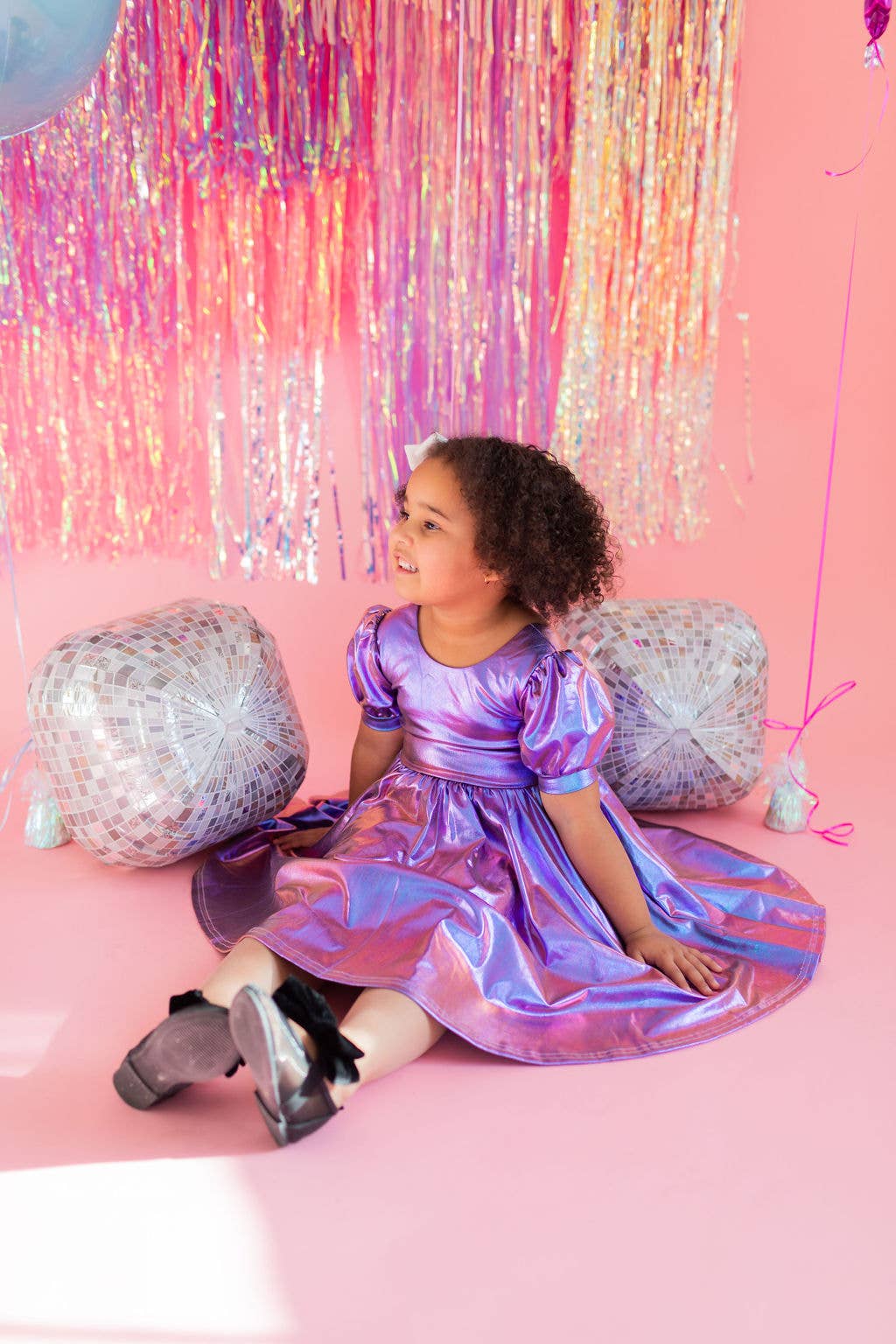 Twirl into the spotlight in this dazzling Puff Dress by Ollie Jay! Featuring eye-catching purple lamé that catches the light from every angle, this dress delivers serious party vibes. The voluminous puffed sleeves add a playful touch, while the scooped back keeps things flirty and fun. A generous full skirt gives you room to move and groove, and the elastic waist paired with a classic crew neck means comfort never takes a backseat. Perfect for celebrations, nights out, or whenever you want to shine.
