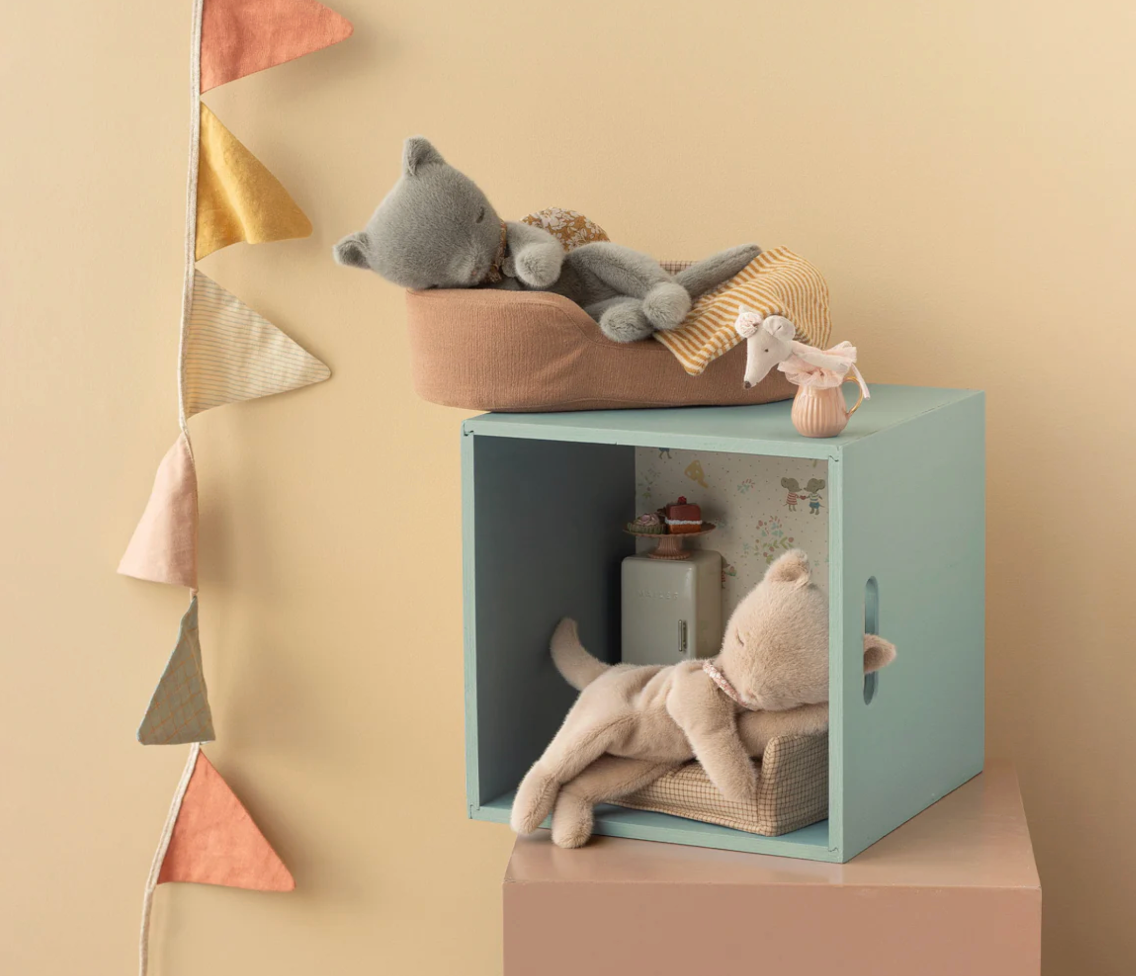 Maileg | Sleeping kitten plush, Small - Cream peach