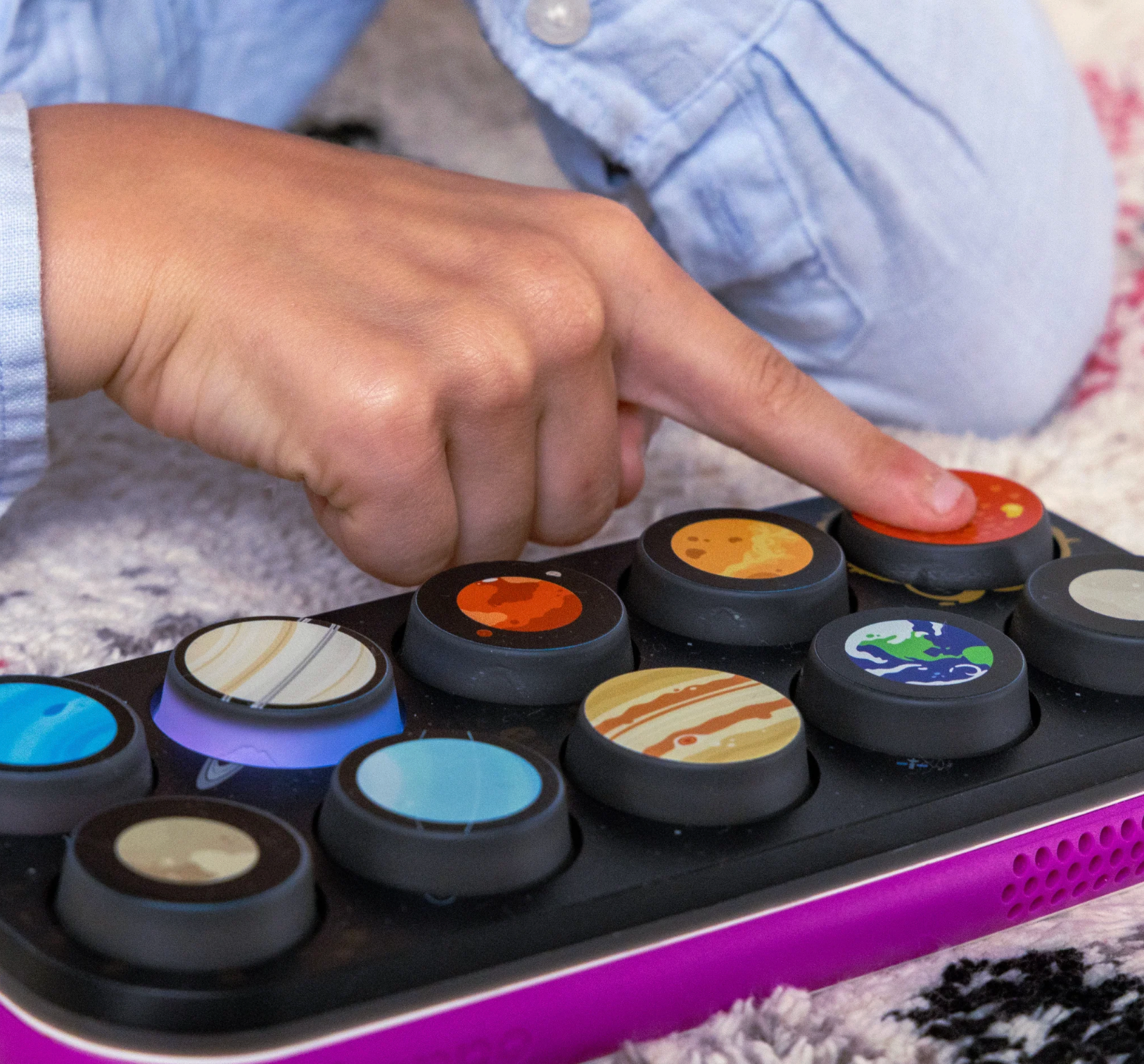 + Blast off with the Solar System Toppo! Each button sends your little explorer on a new screen-free space adventure filled with sound, storytelling, and big cosmic fun. Take to the stars with 10 new activities! Ages 1-8.