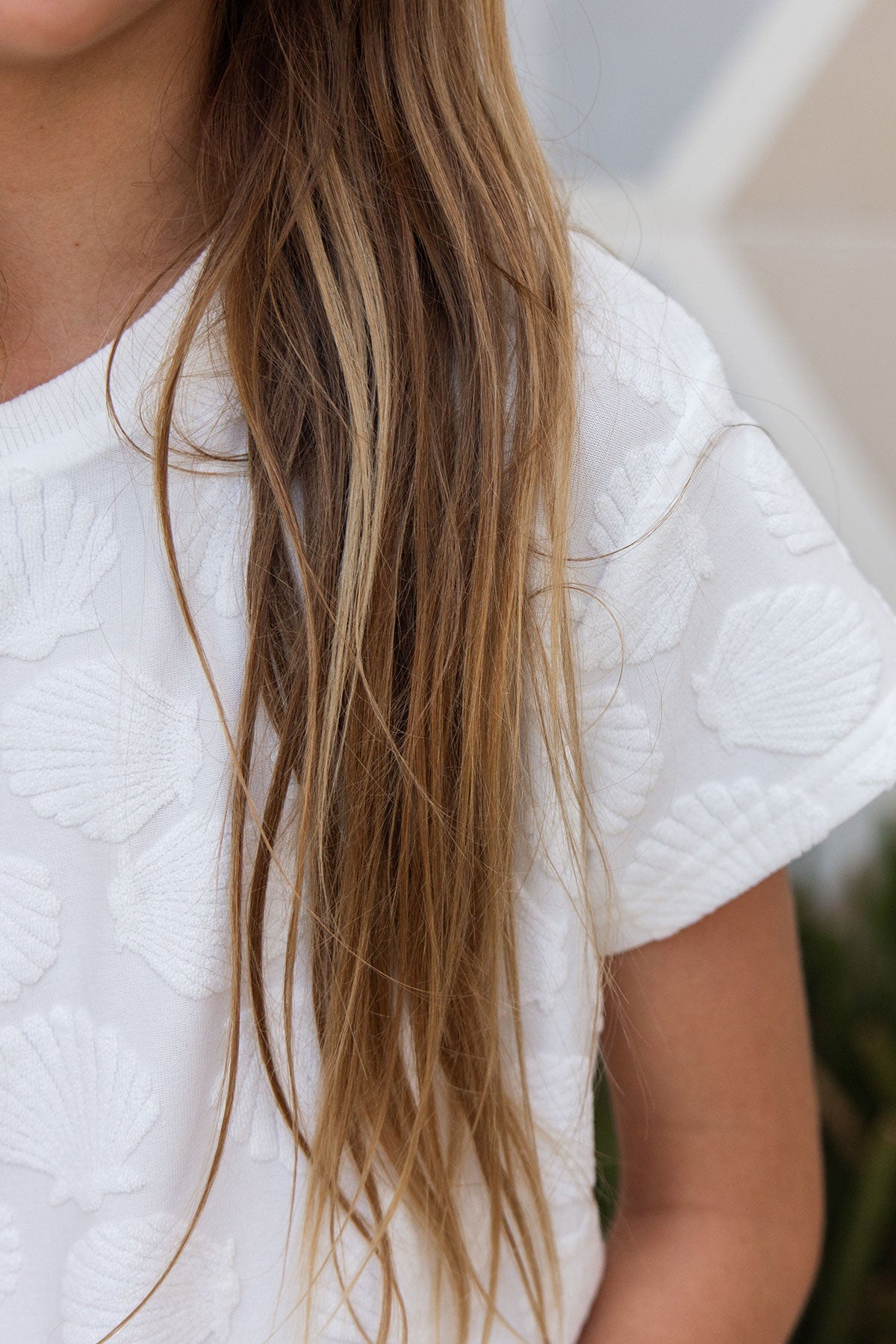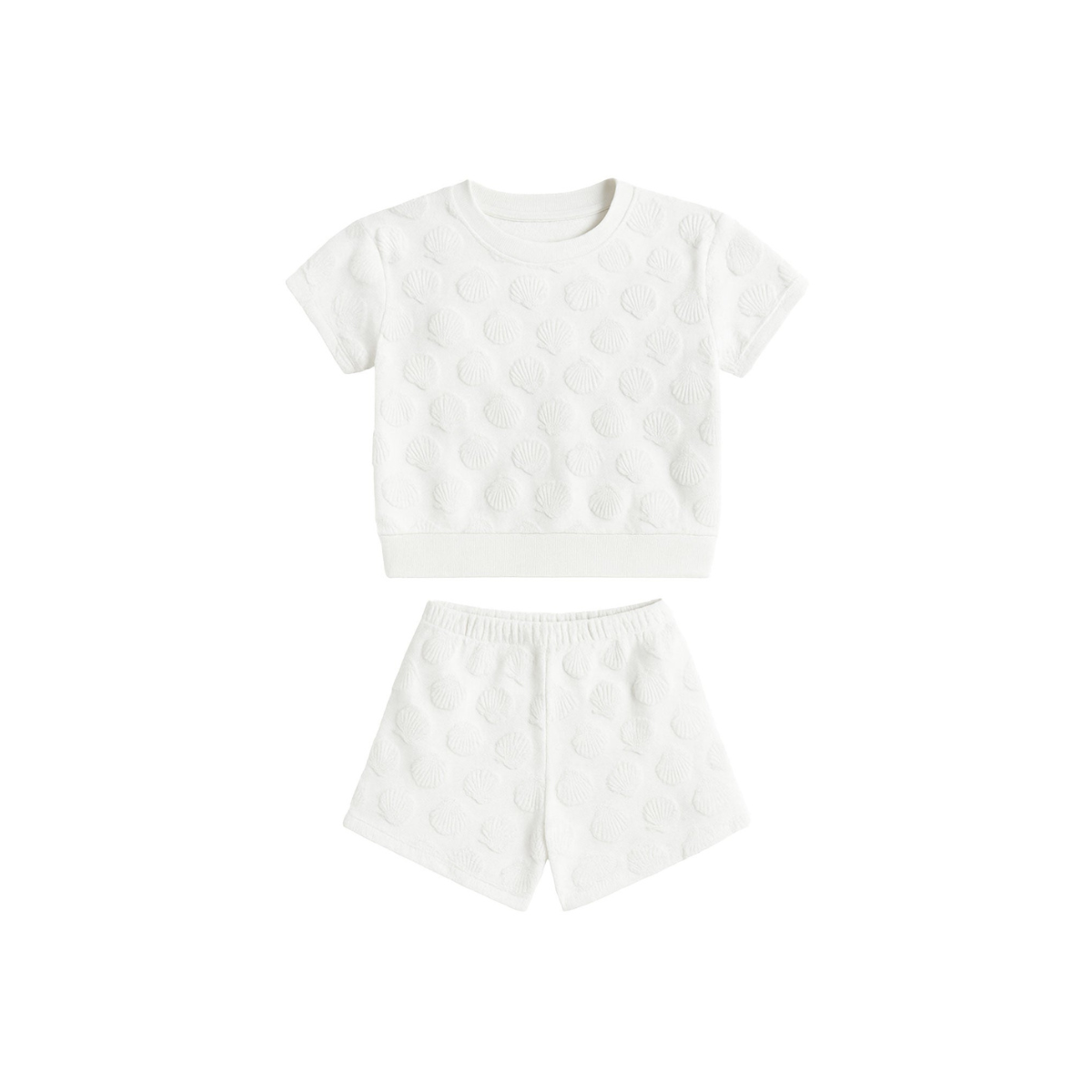 Discover cozy style with Seaesta's Neon Peach Terry Set, featuring an adorable seashell print that brings beach vibes to everyday wear. Crafted from recycled fabric, this playful two-piece set is perfect for lounging, post-swim days, or casual adventures. Soft, comfortable, and sustainably made for kids who love the ocean.