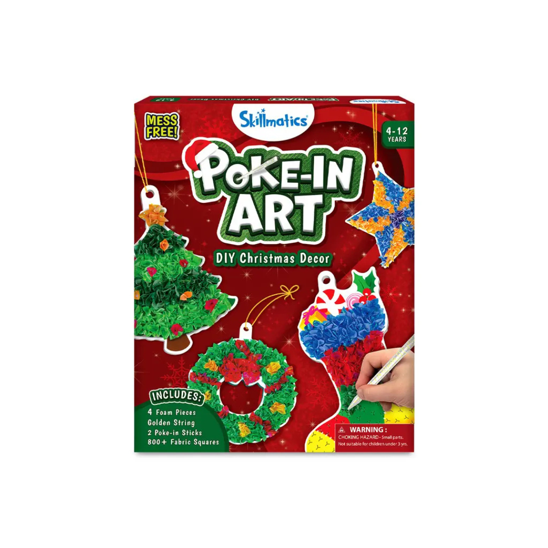 Get kids excited for the holidays with the Skillmatics Poke In Art: Christmas craft kit! This fun activity lets little hands create festive designs by poking colorful patterns that come together as a charming garland. Perfect for decorating your home with holiday cheer while sparking creativity and fine motor skills. Let the festive fun begin!