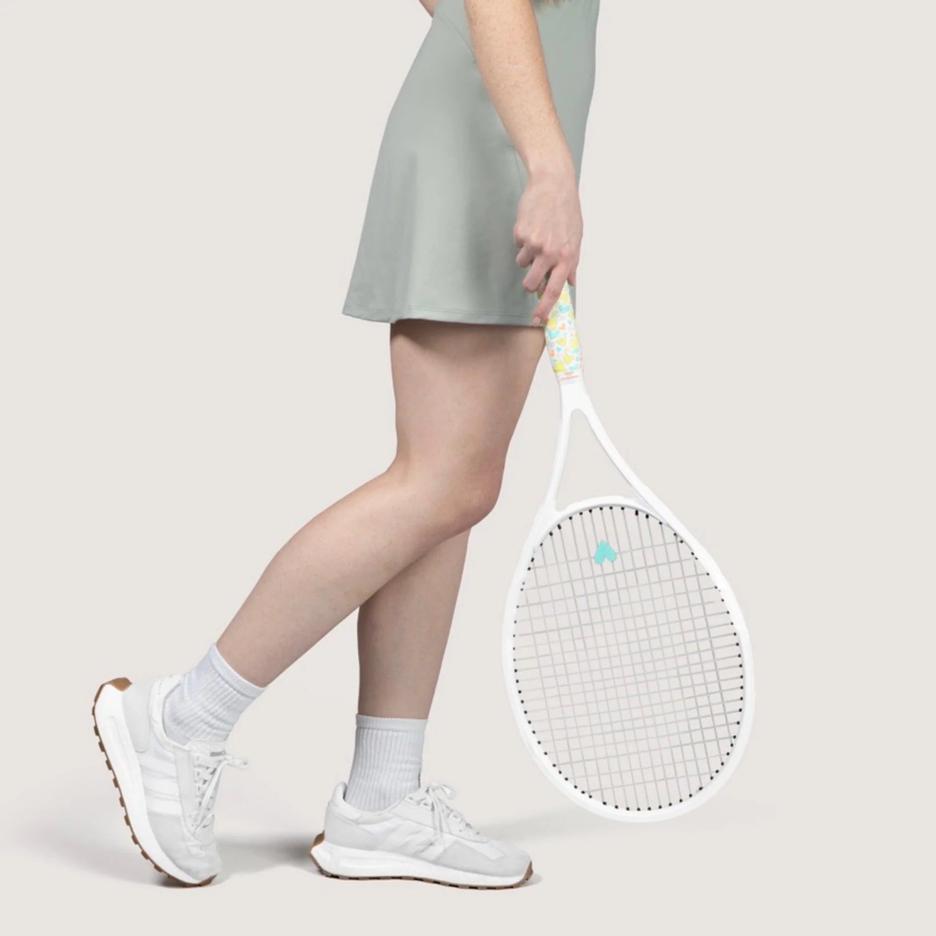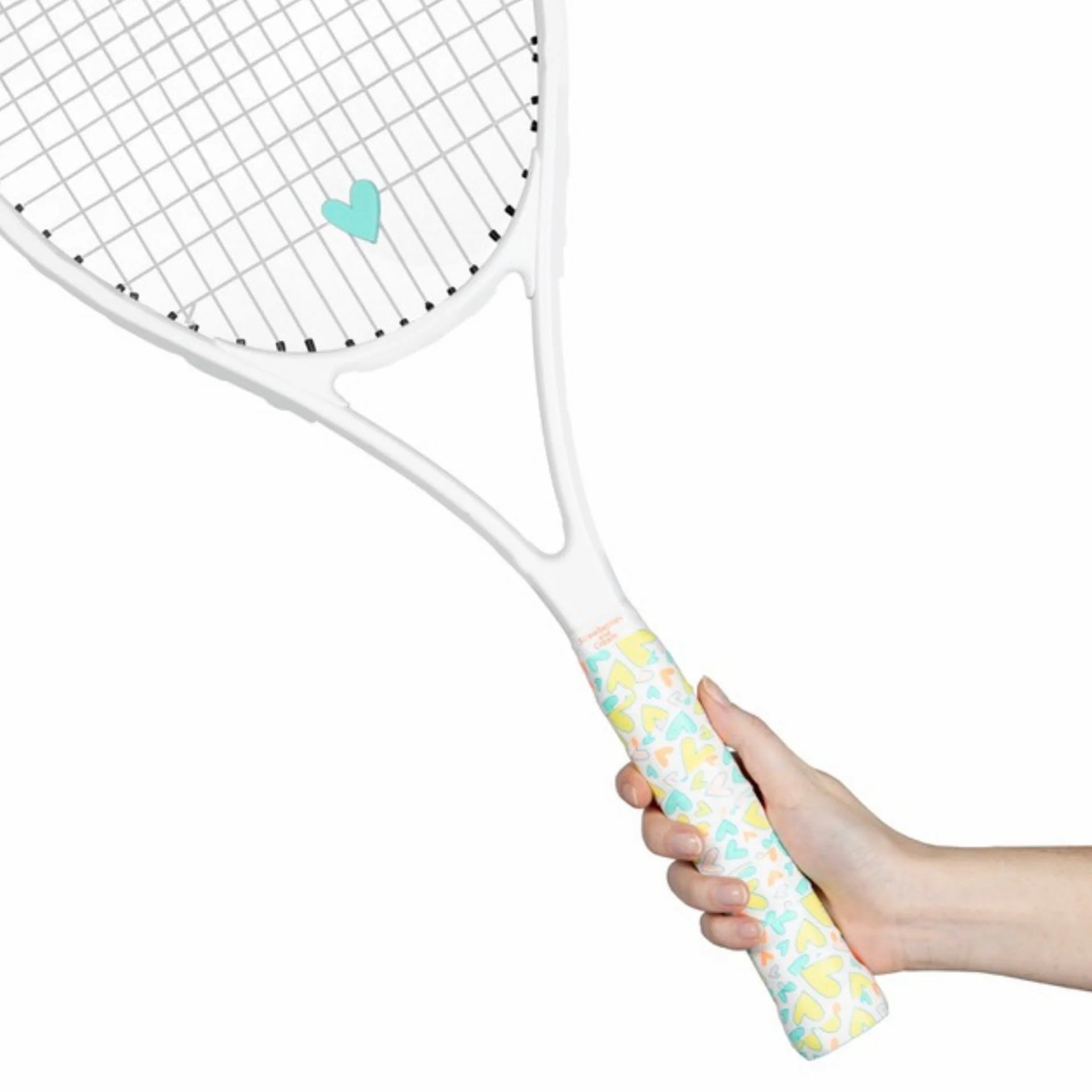 Brighten your game with the Pastel Hearts tennis set, featuring soft pink, green, orange, and yellow hearts. This playful overgrip and dampener combo adds fun and color to your racket while keeping your grip secure. Perfect for tennis players who love a cheerful style!