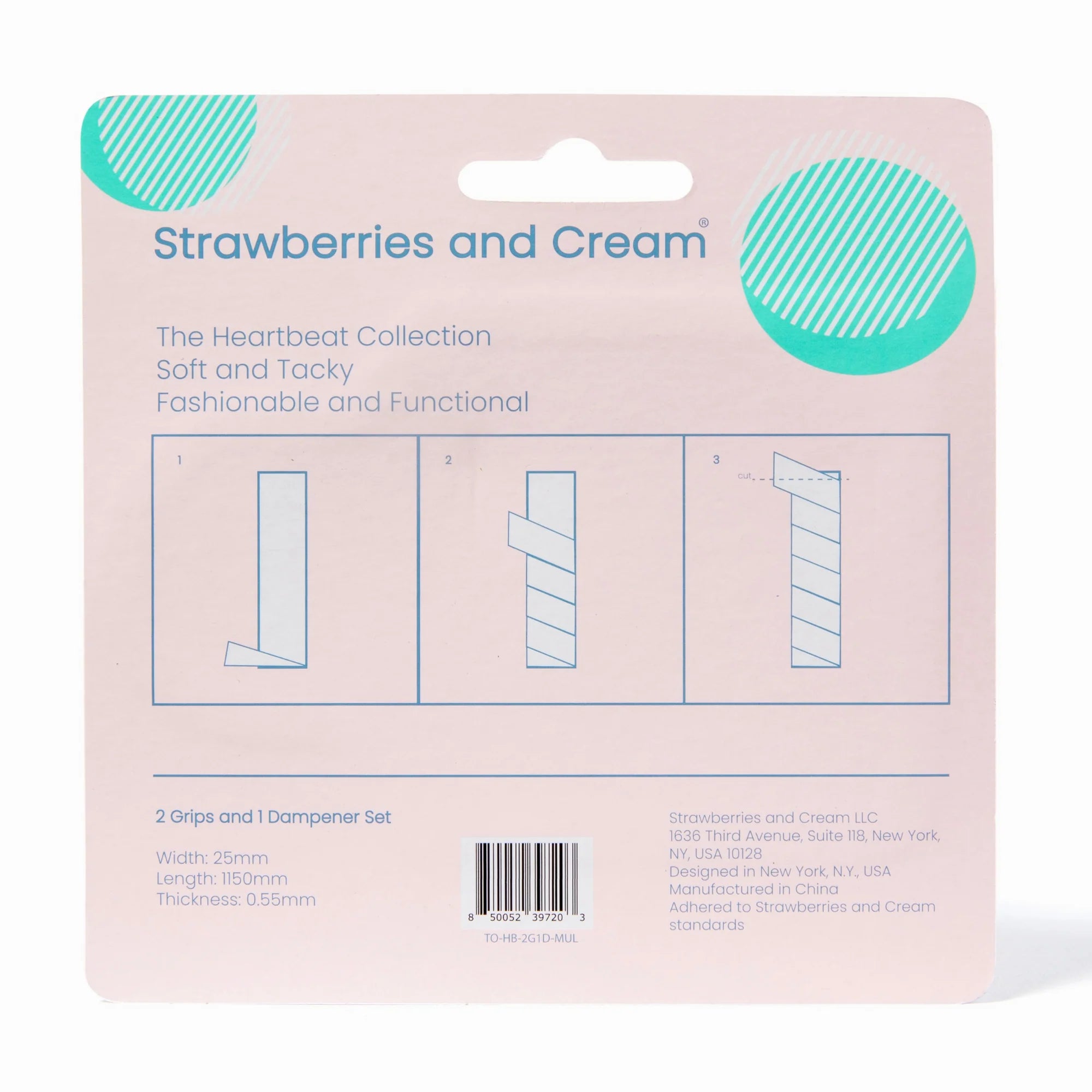 Strawberries and Cream | Tennis Overgrip and Dampener Set - Pastel Hearts