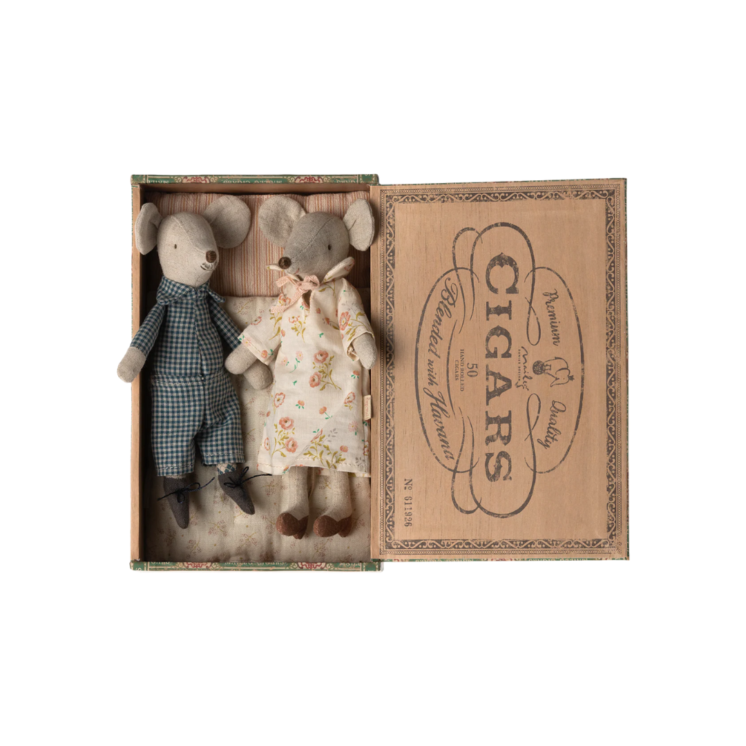 Maileg | Grandma and Grandpa mice in cigarbox is backordered and will ship as soon as it is back in stock.