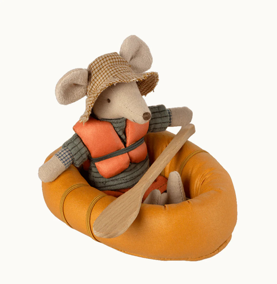 This charming little rubber boat is crafted from fabric and includes a life vest and paddle. It's not waterproof, so pretend it’s floating on the water while you play. Pair it with the hiker mice and other outdoor accessories to create even more imaginative adventures.