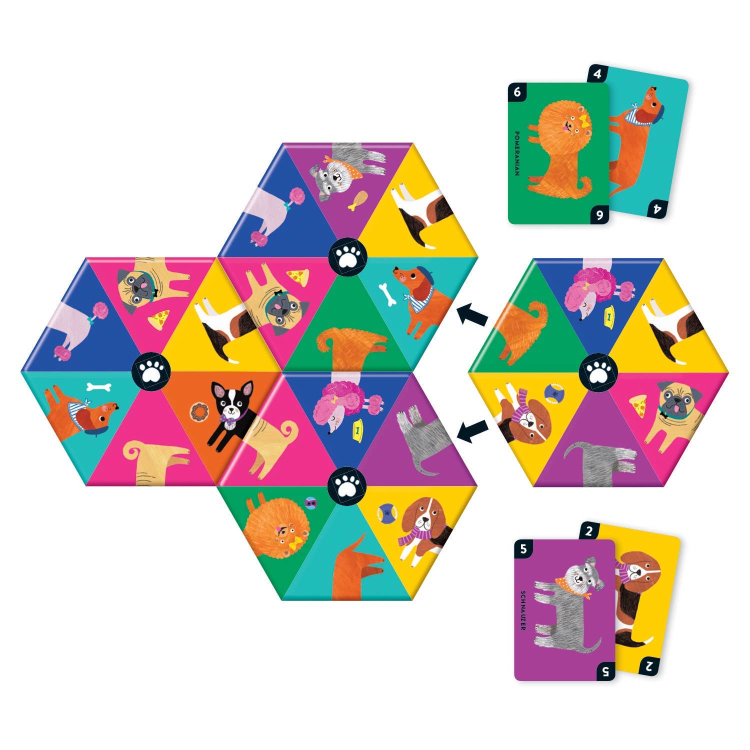 Mix-the-Mutts! Game from Mudpuppy is a hilarious original family game concept of mixing head and tails to create Pug-a-poos, Schnoodles, Chiweenies, and many more. Collect matching card sets with the highest points to win. - Hilarious family game of hybrid hounds!