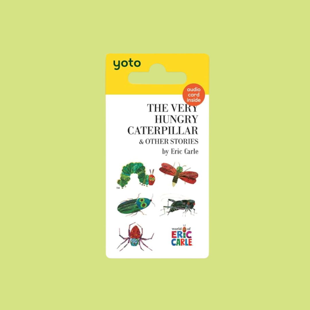 Dive into five beloved Eric Carle stories with this enchanting Yoto Card. Featuring the timeless tale of The Very Hungry Caterpillar alongside The Very Quiet Cricket, The Very Lonely Firefly, The Very Clumsy Click Beetle, and The Very Busy Spider—all narrated with delightful sound effects and music. Bonus: enjoy Eric Carle's own reading of The Very Hungry Caterpillar. Perfect for young listeners discovering classic picture book magic.