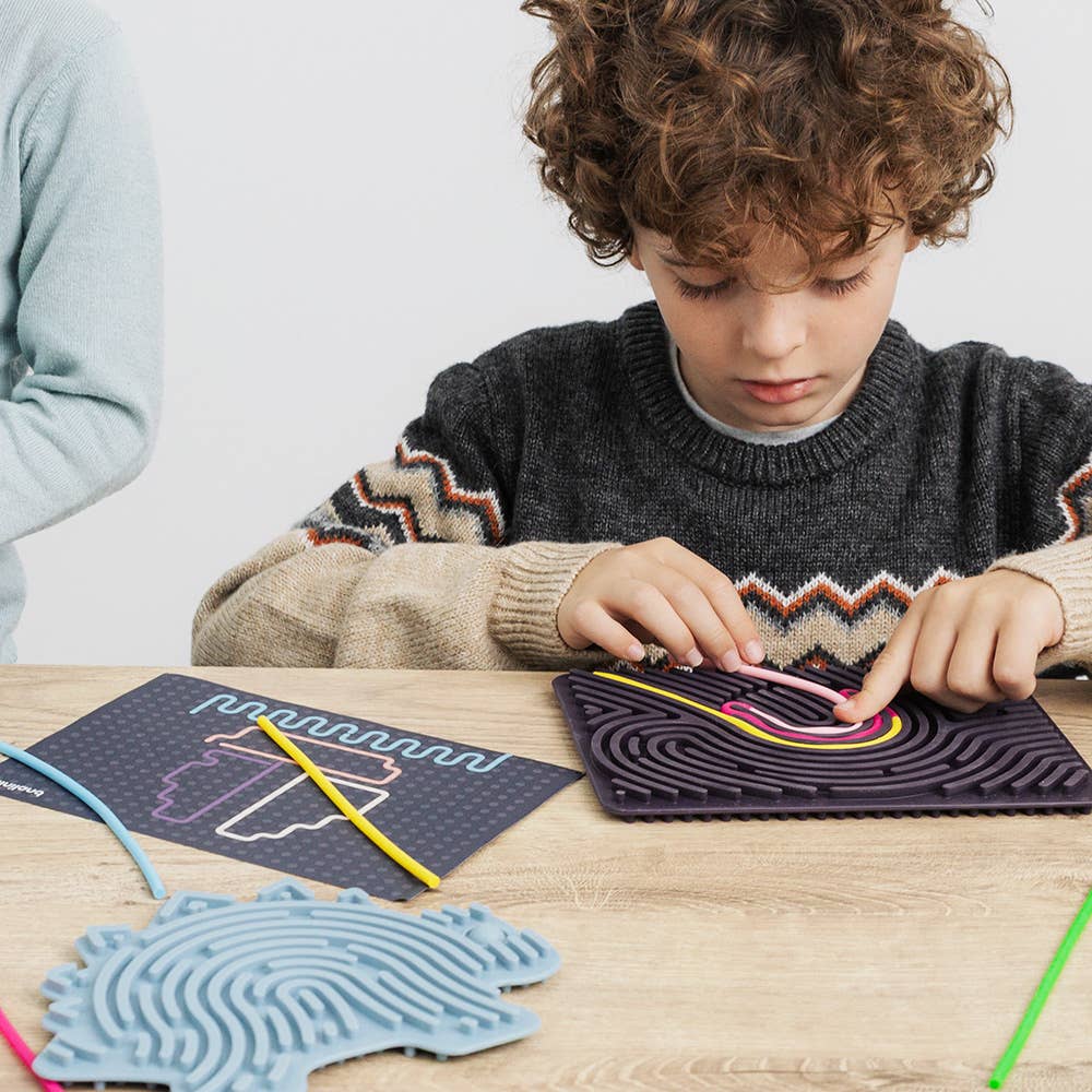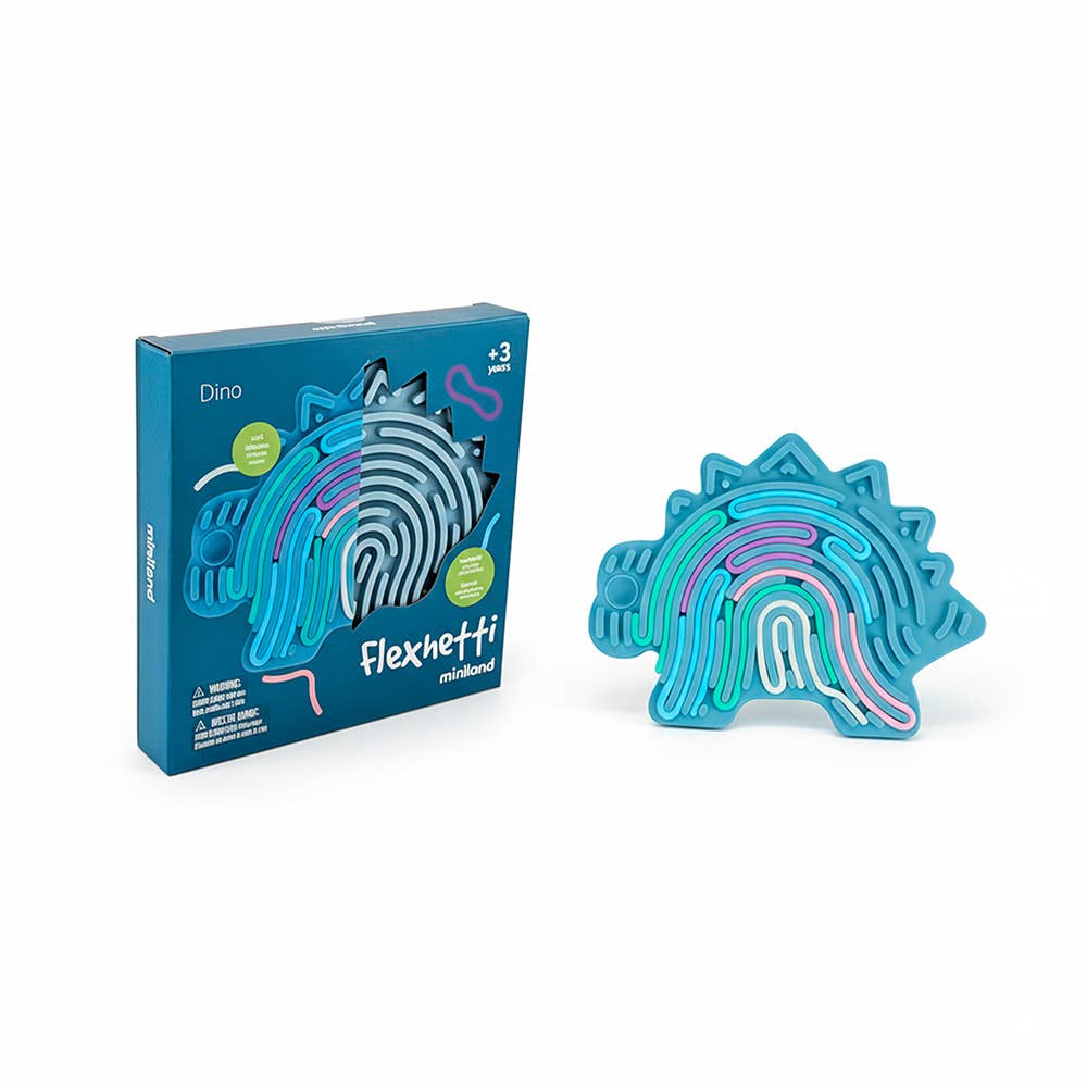 The Flexhetti Dinosaur Silicone Fidget is an interactive sensory toy for babies 18 months and up. Soft, flexible silicone noodles press and fold onto the friendly dinosaur's surface, encouraging creative play and tactile exploration. Perfect for developing fine motor skills, hand-eye coordination, and preparing little ones for drawing and writing. Engaging, textured design keeps hands busy and minds stimulated.