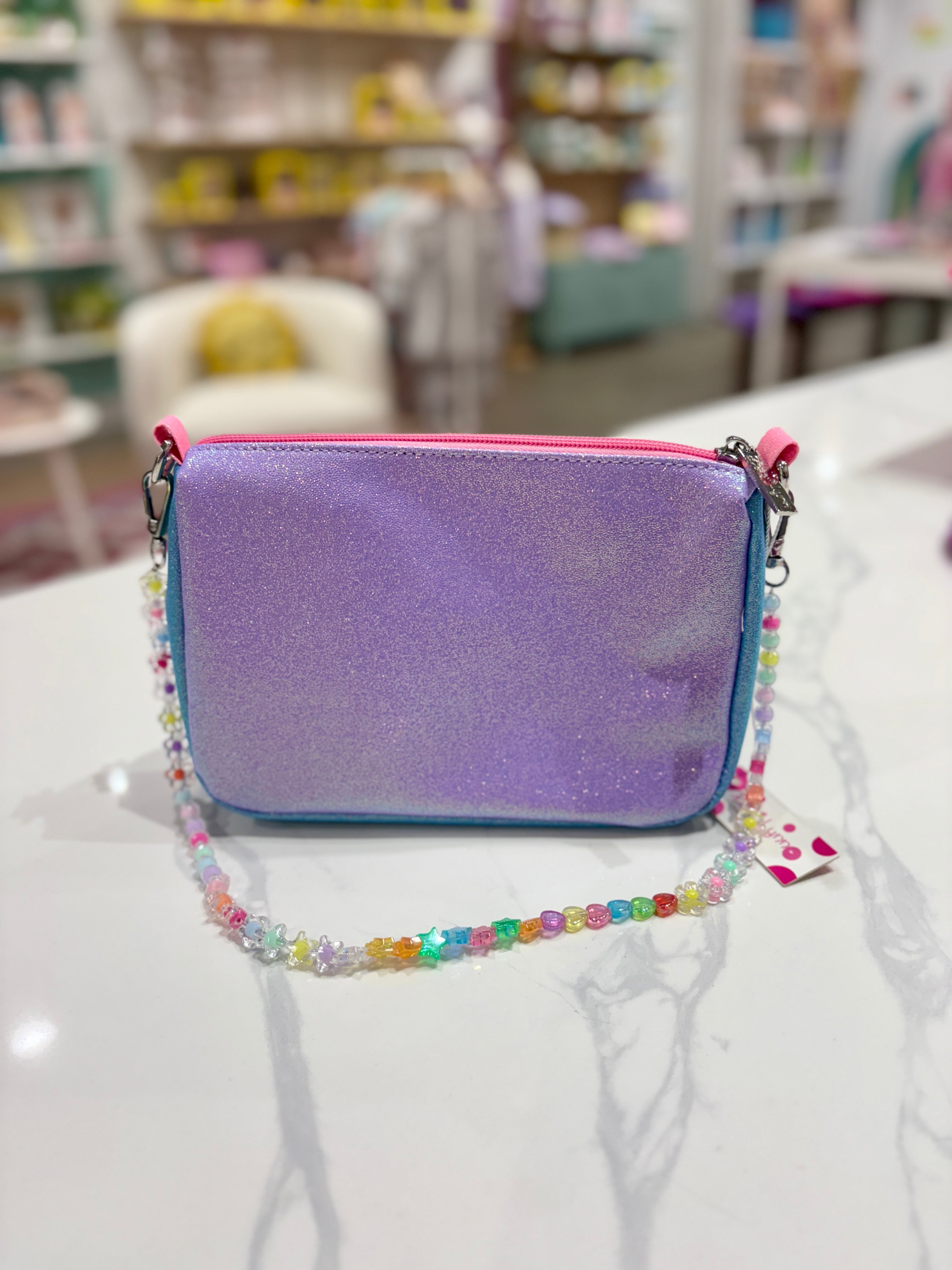 Add a stellar sparkle to your outfit with the Galaxy Shimmer Color Block Handbag by Bari Lynn. Its vibrant color blocking and shimmering finish make it a playful statement piece, perfect for turning heads wherever you go. Compact yet roomy, this handbag keeps your essentials organized with a touch of cosmic charm. Ready to carry your style to the stars?