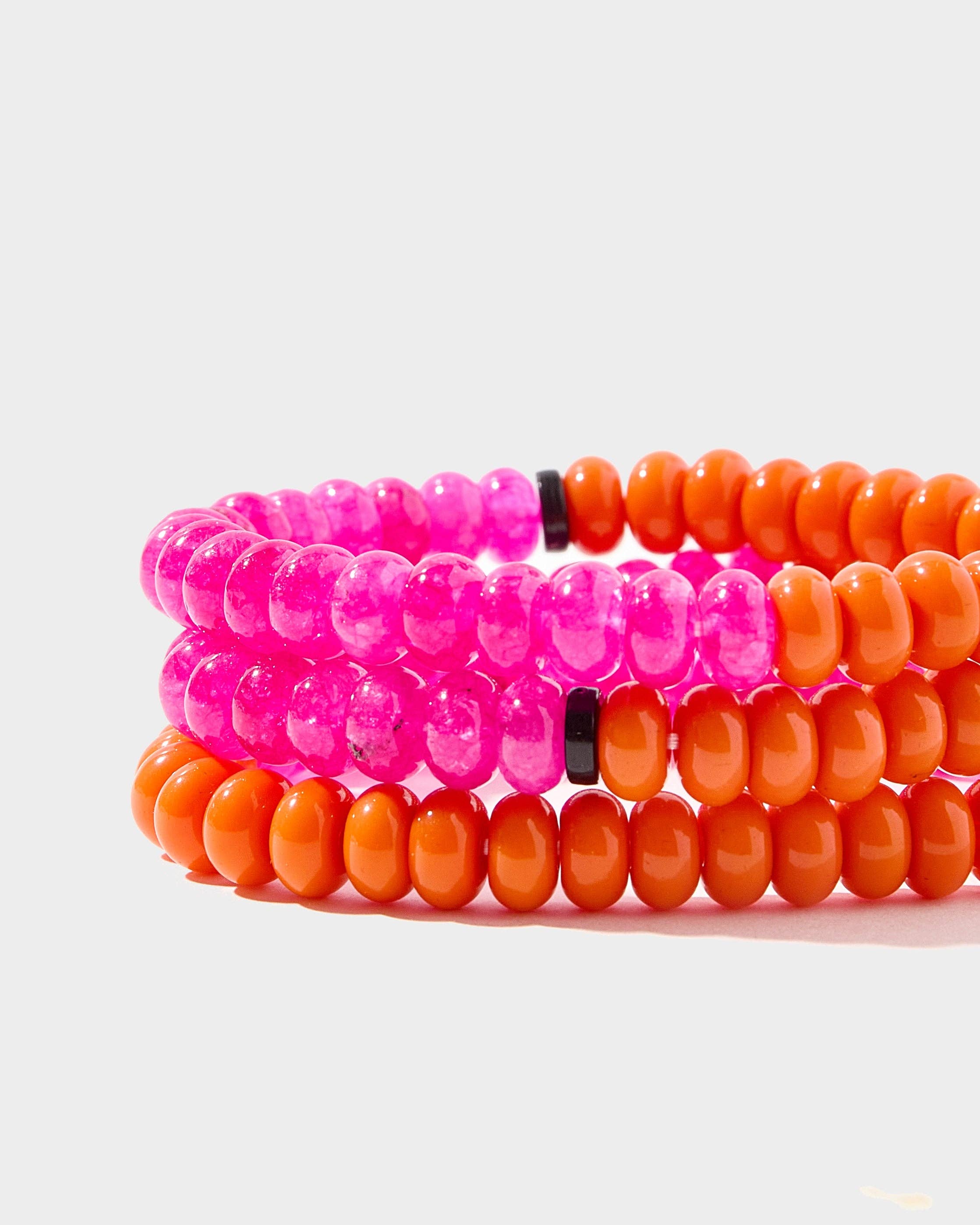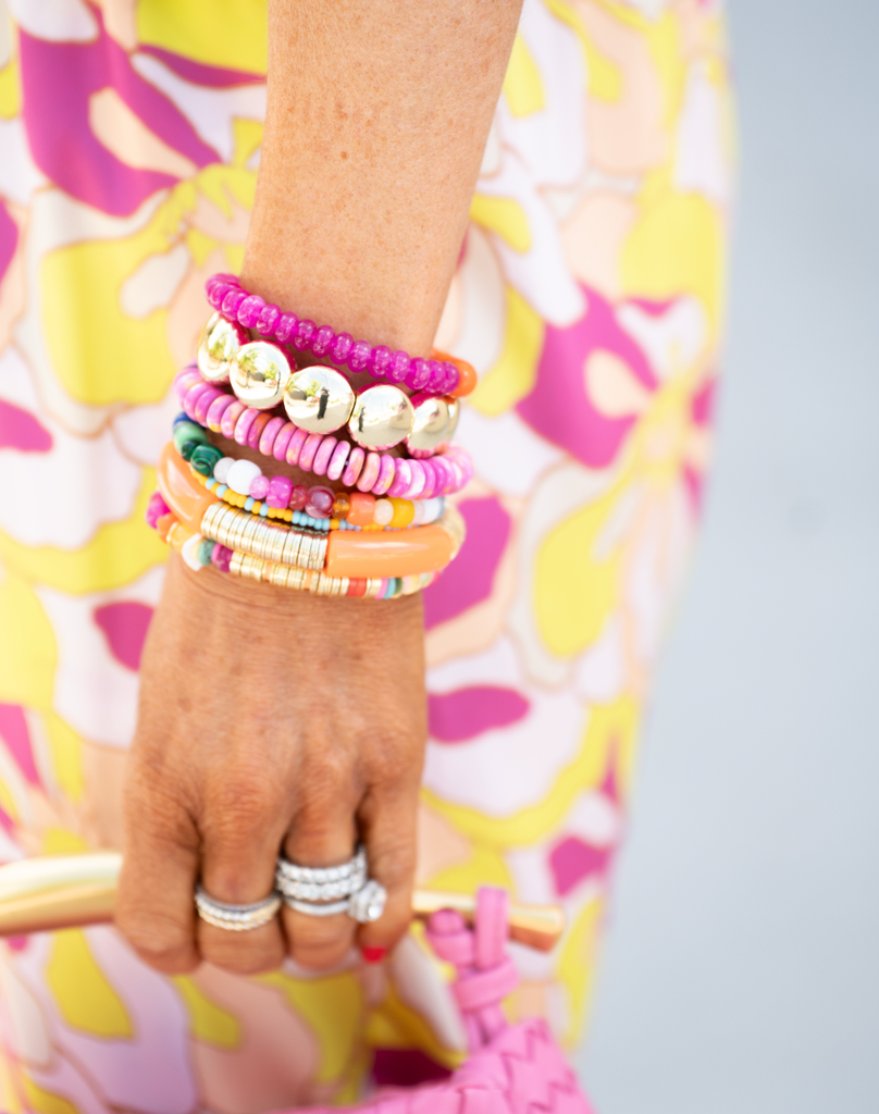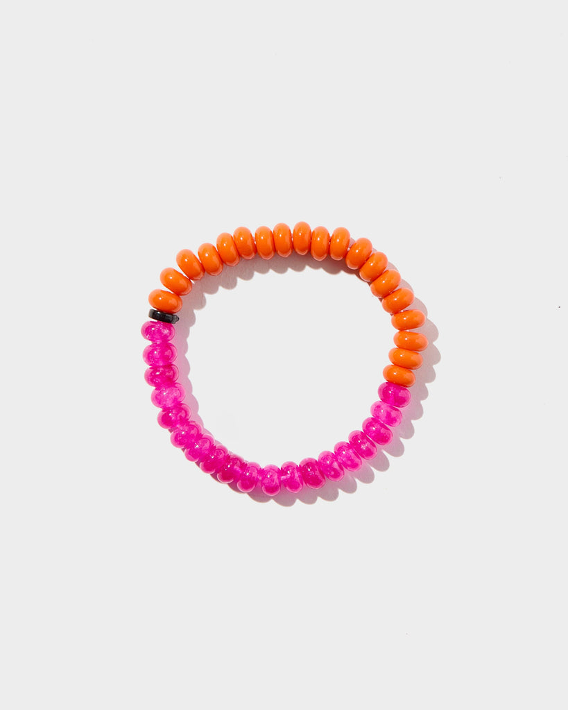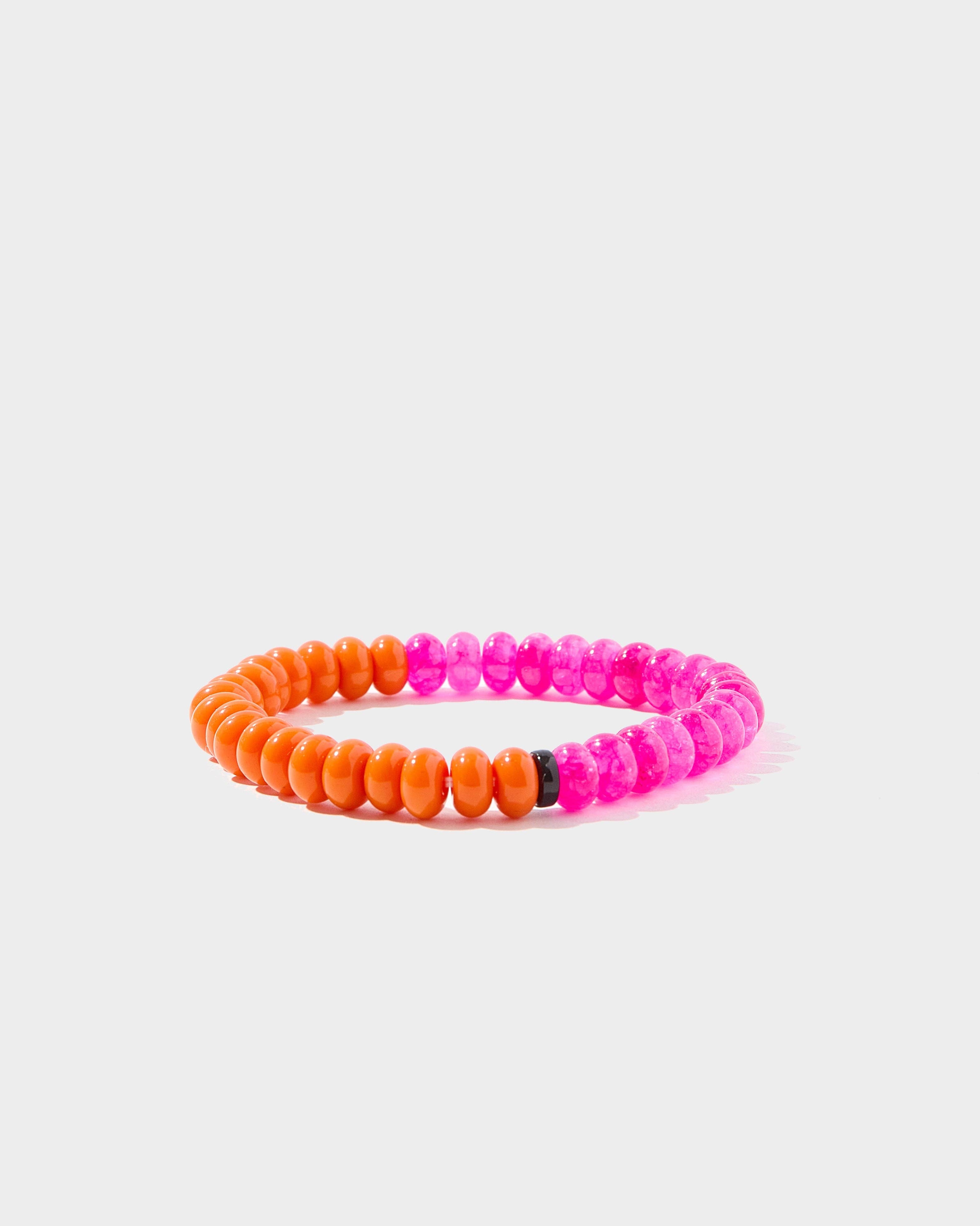 The Bellini bracelet serves up summer vibes with its juicy orange and pink bead combo! Each bead is hand-dyed for that perfect sun-kissed look. Wear this playful pop of color to the beach, brunch, or anywhere your day takes you - it's like a tiny vacation for your wrist!