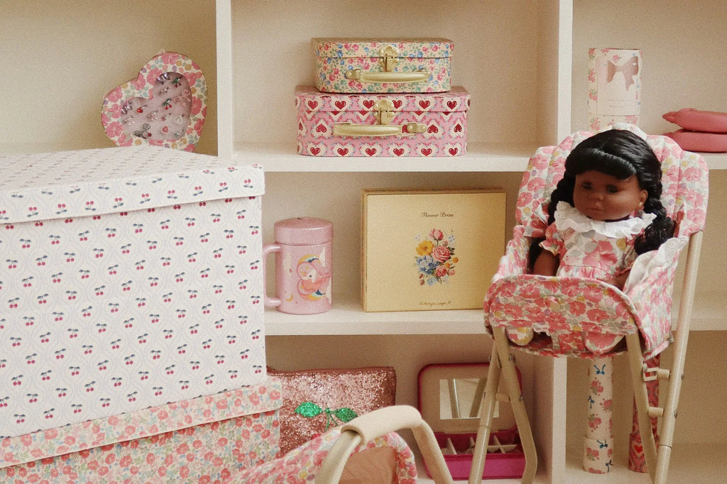 This charming folding highchair in Rose Anglaise is perfect for little dolls’ table time adventures. Designed with sweet scalloped edges and a removable seat, it’s easy to clean and pack away after play. A delightful companion for imaginative moments, adding style and fun to every doll’s meal!